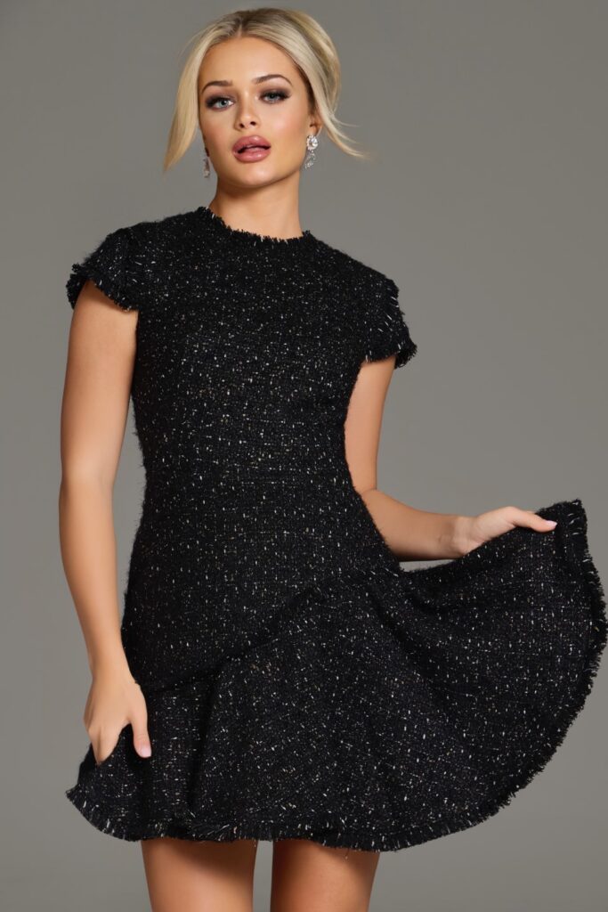 Jovani 40659 Cap Sleeve A-Line Tweed Dress with Frayed Edges