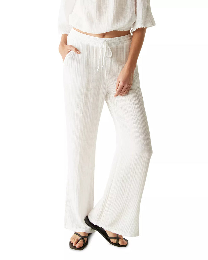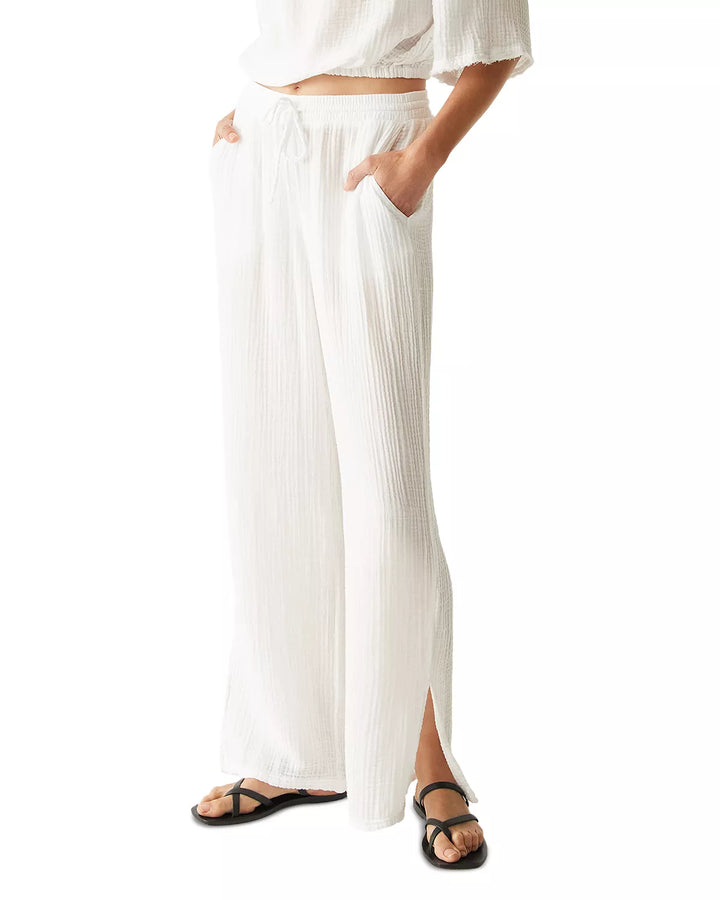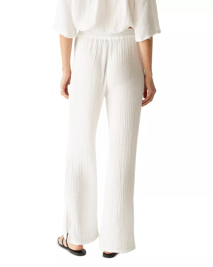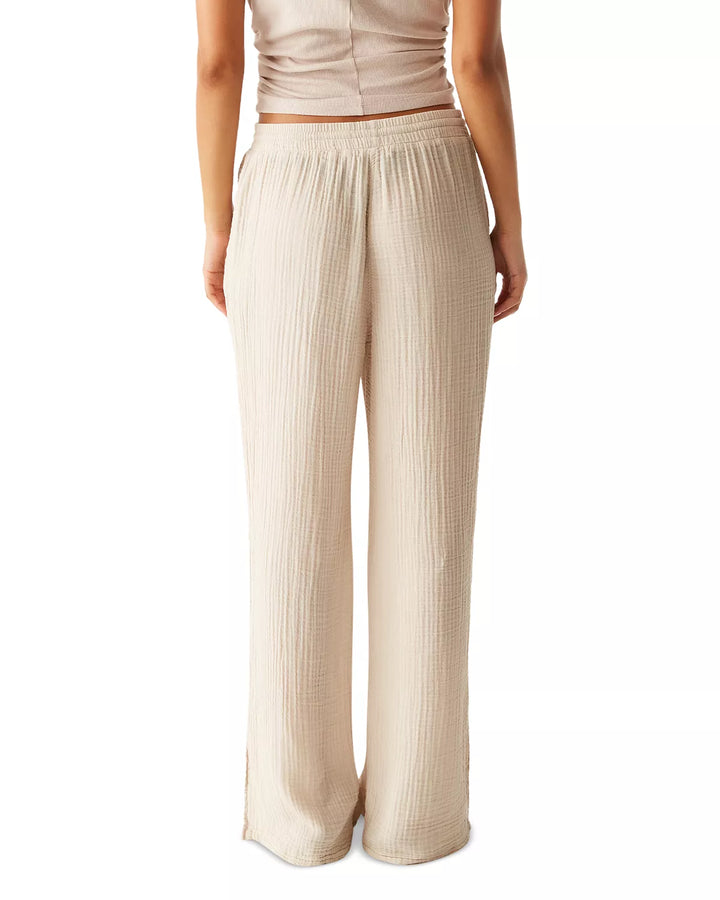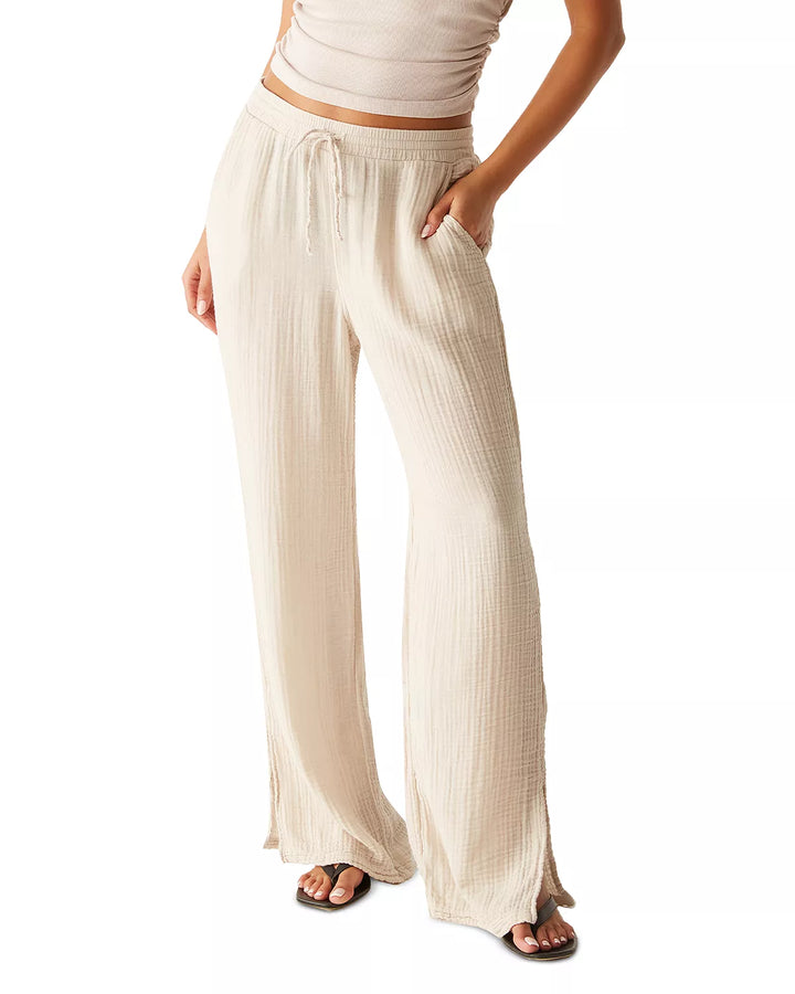 The Jovi pant is made from our 100% cotton Double Gauze fabric and has a drawstring waist and straight leg with side slits at the ankles.