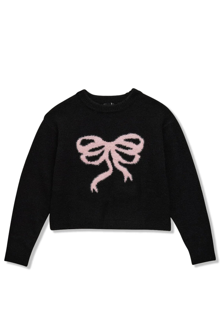 The Maggie Sweater features a soft knit construction with a standout pink bow detail across the front—adding just the right amount of charm to a clean silhouette. Designed with a relaxed fit and timeless crew neckline, it’s a fresh take on feminine style.