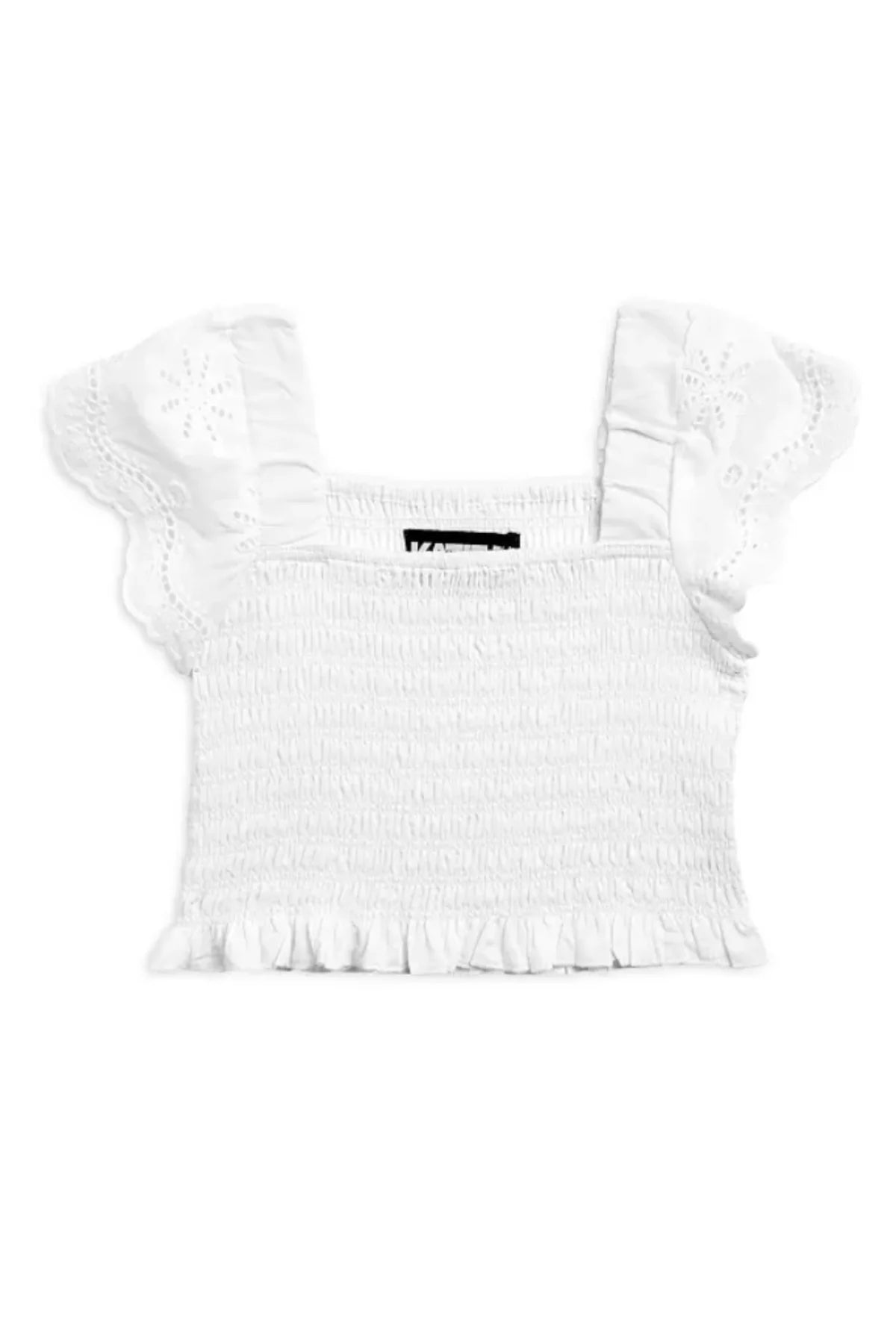 Feel the utmost cuteness with the Faye Top! Pair it with the Faye Skirt to achieve a flawless set. The Scalloped Edge Lace Sleeves provide a charming touch to this essential top.