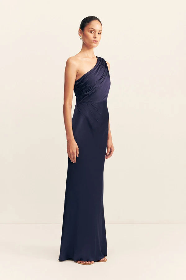 La Lune Gathered One Shoulder Maxi Dress