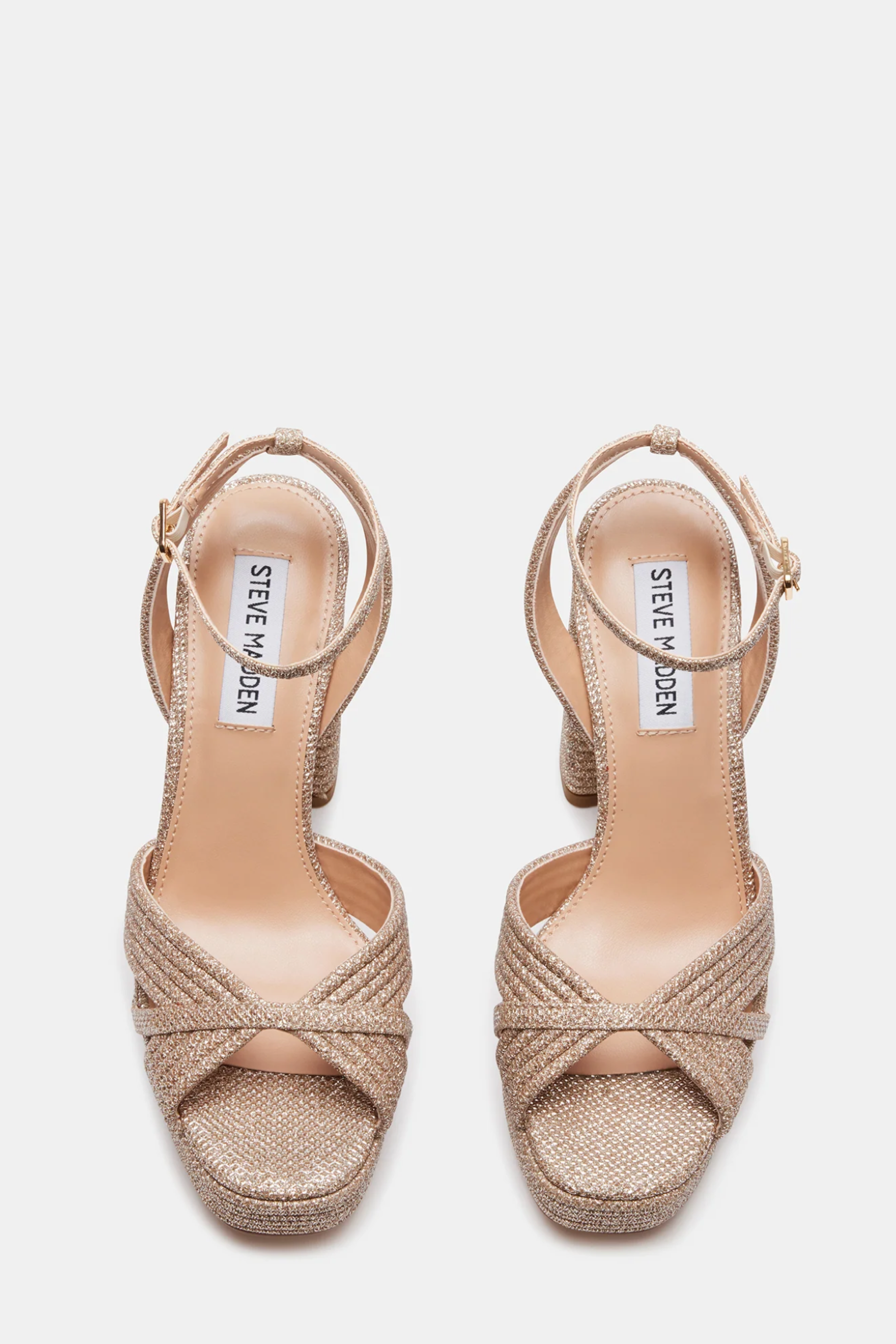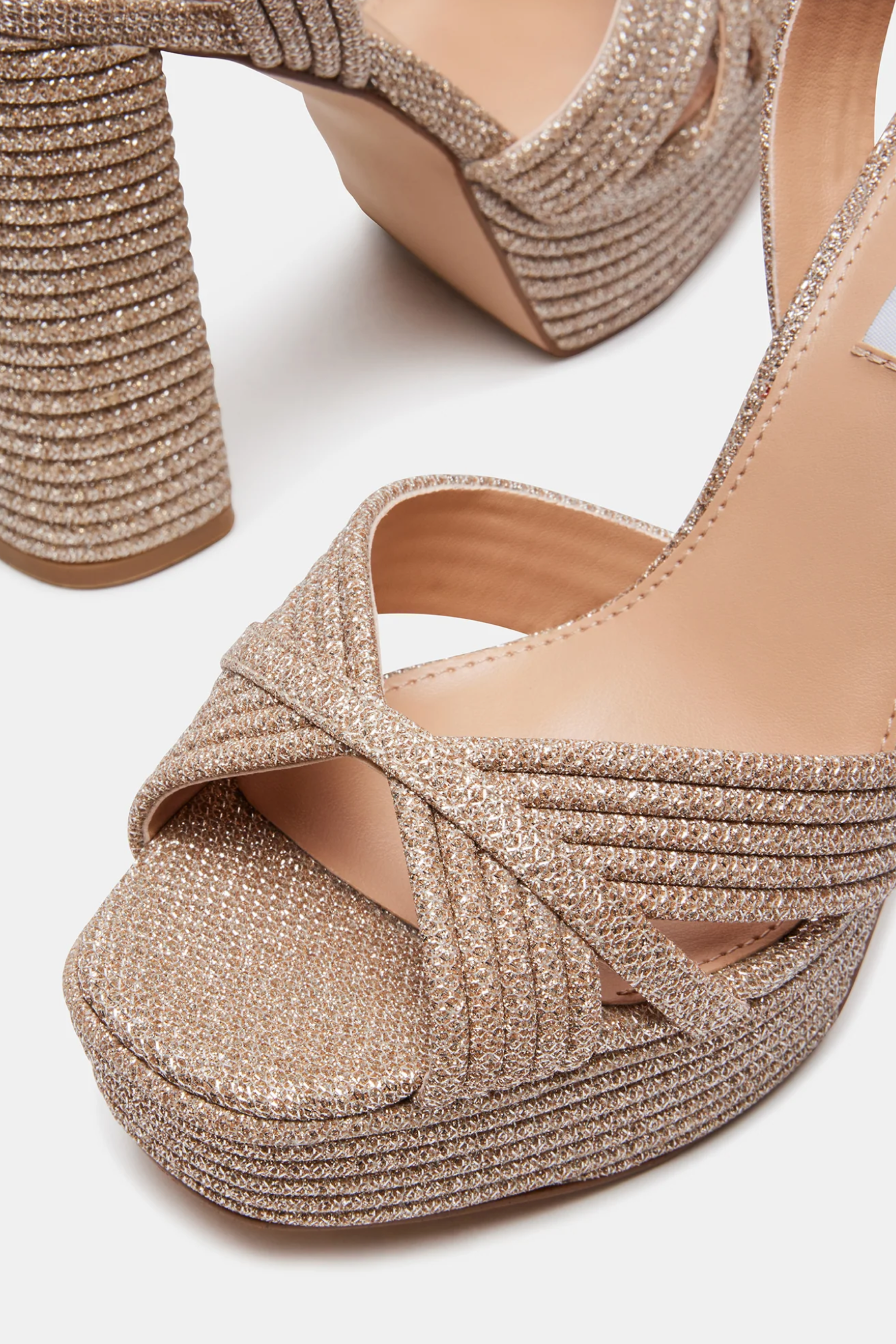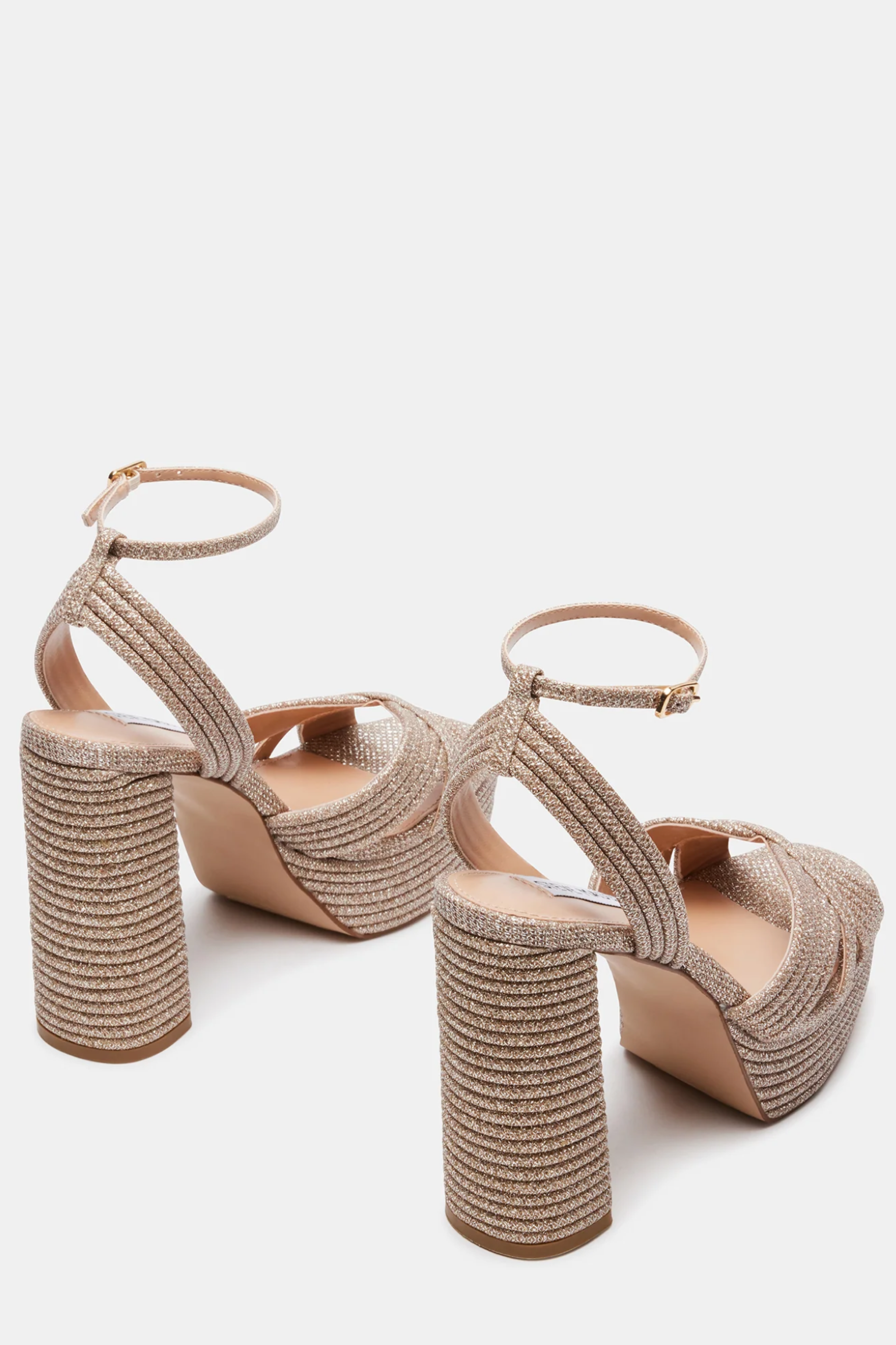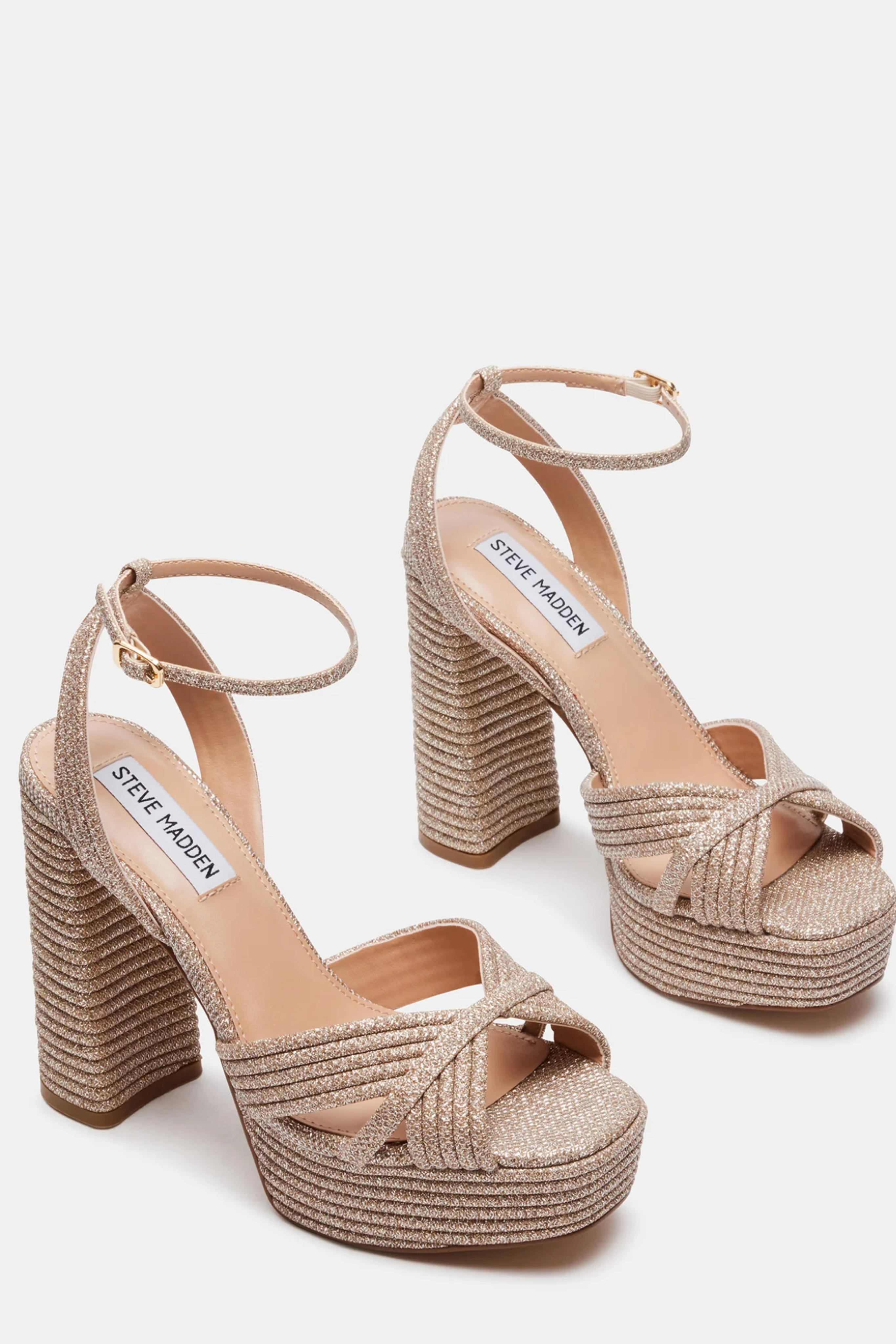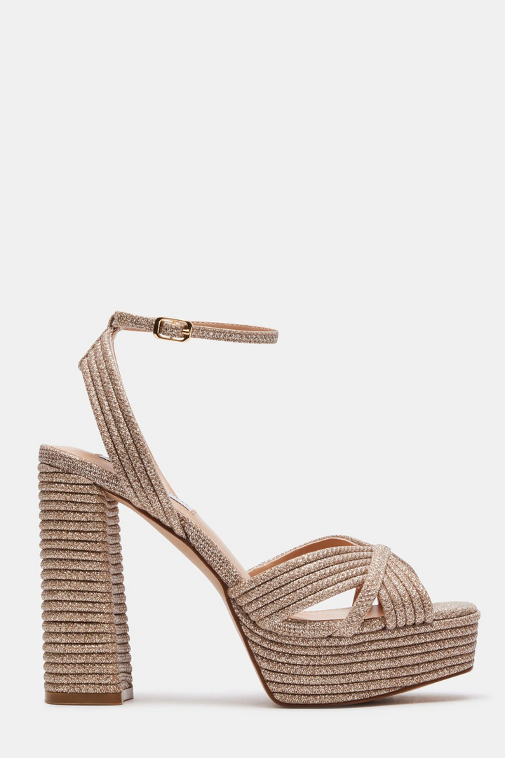 Wrapped cord adds subtle texture and shimmer to the platform, block heel, and chevron straps of the LAUREL sandals.