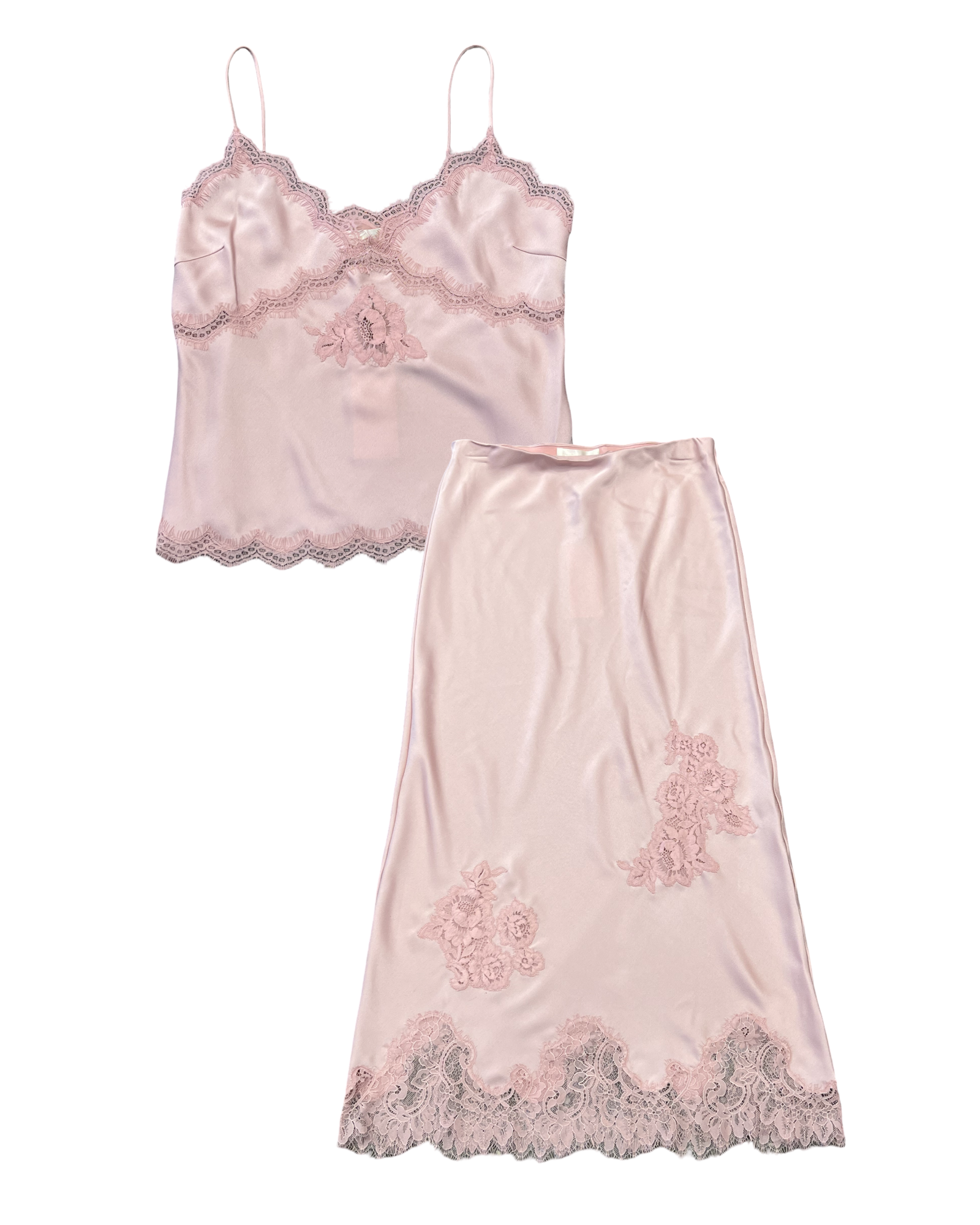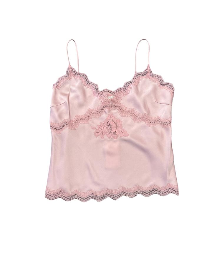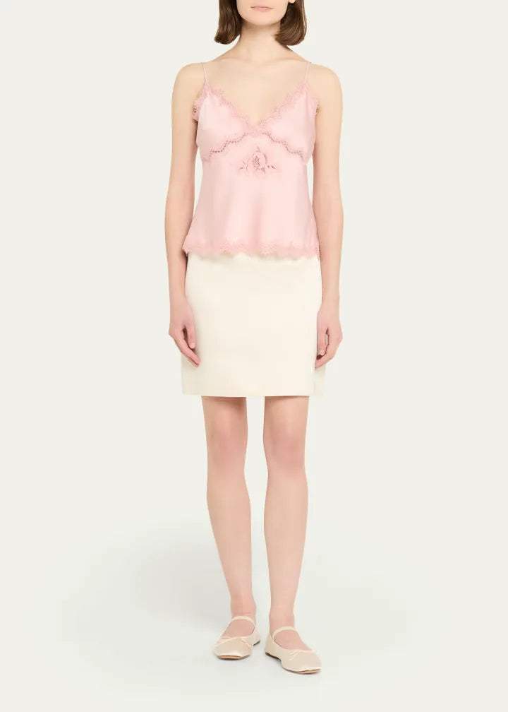 A timeless cami with a vintage-inspired twist, the Evony Top arrives in luxe, satin crepe fabric with a soft sheen, beautiful drape, and effortless wear. Cut on the bias for a slinky, body-skimming fit, she features a flattering V-neckline, empire waist seam, and scallop lace trims at the neckline, sweep, and waist. Easy to pull on and endlessly versatile, pair with the Vivia Skirt for the full set.