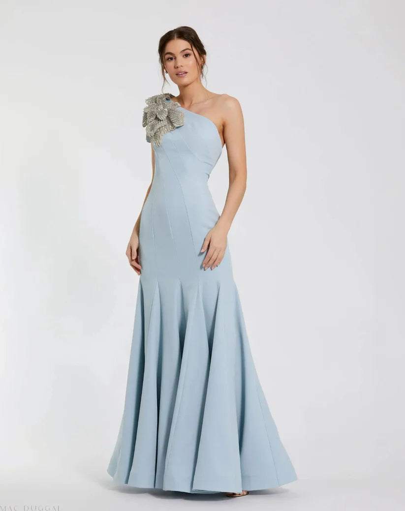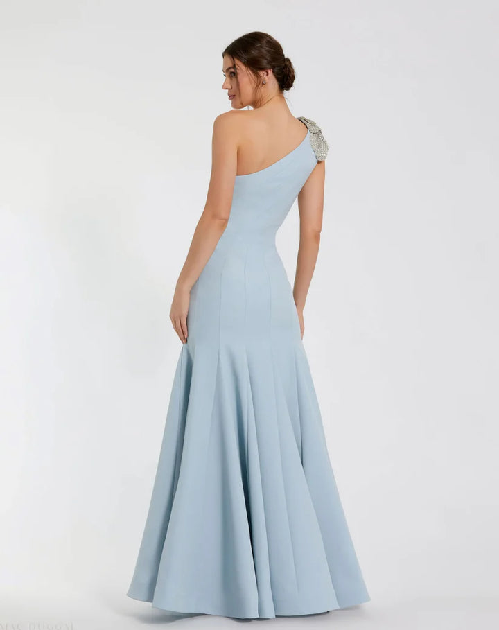 Mac Duggal 11810 Crepe One Shoulder Crystal Flower Gown