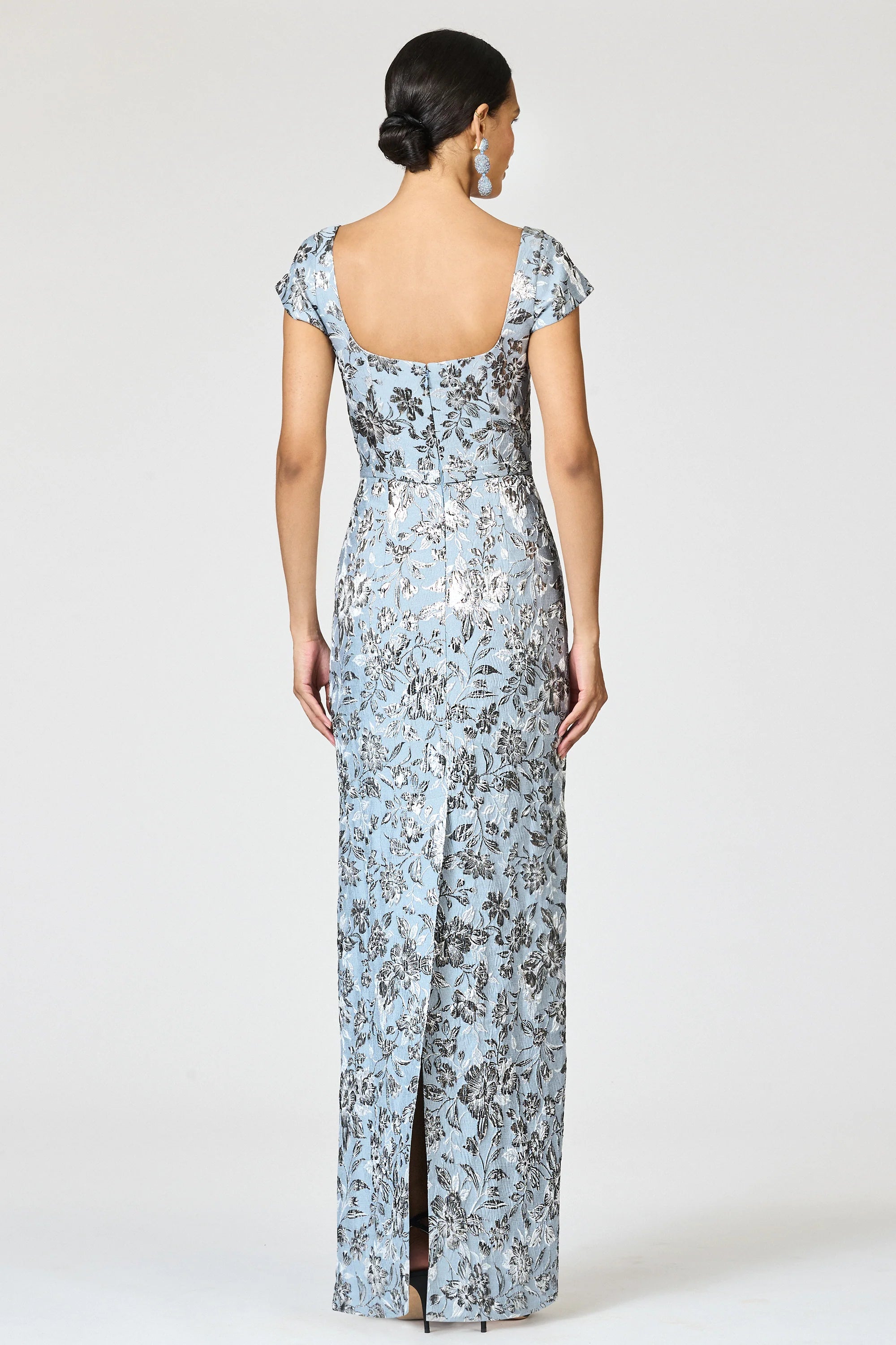 Introducing Grace by Sachin & Babi, an exclusive, limited edition gown for the discerning customer. Featured in a metallic cloque fabric exudes sophistication. The cap sleeve, fitted bodice, and slim a-line skirt flatter any figure. Only a few were made, making it truly special.