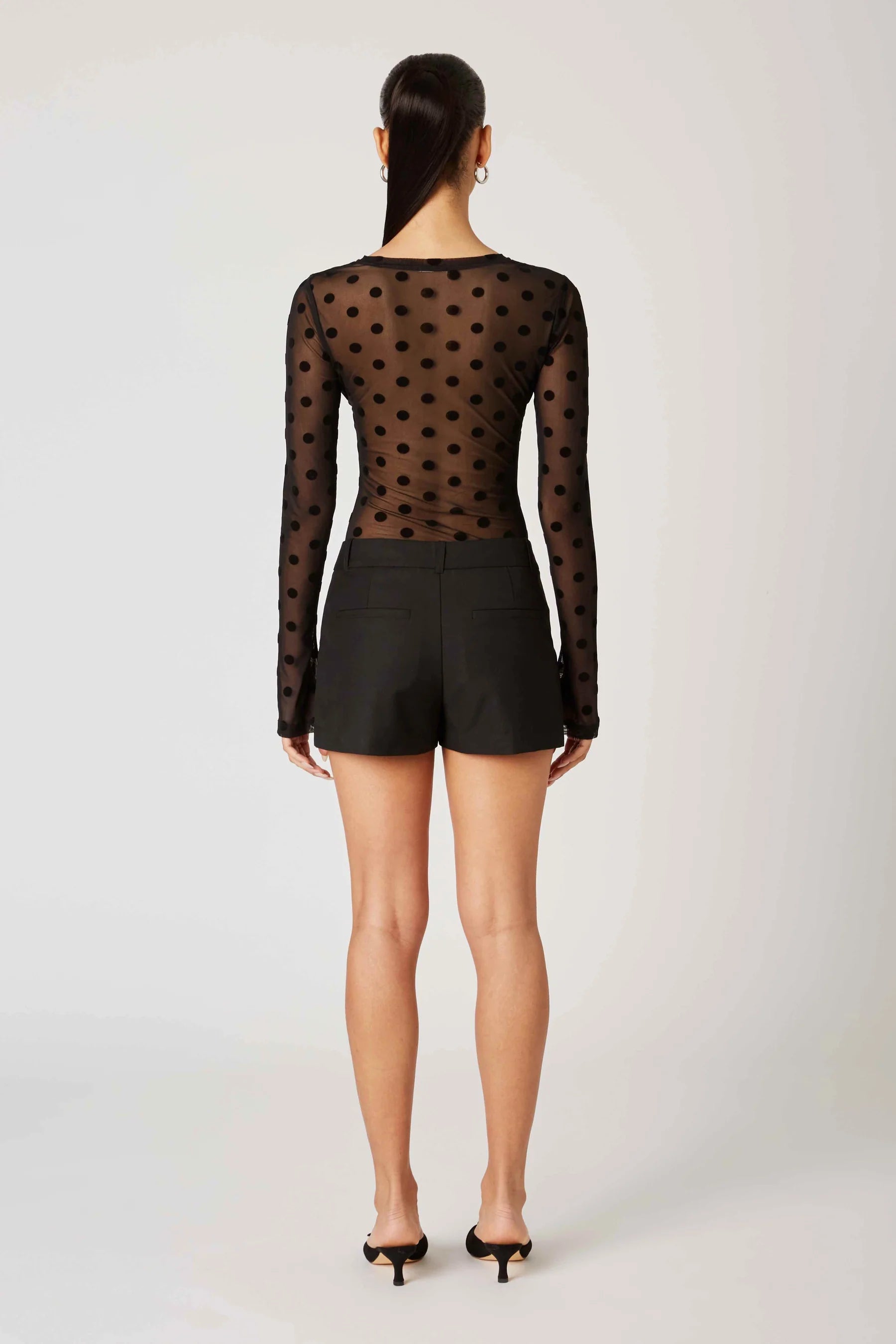 Mid-rise mini shorts with belt loops and zipper closure. Fully lined.