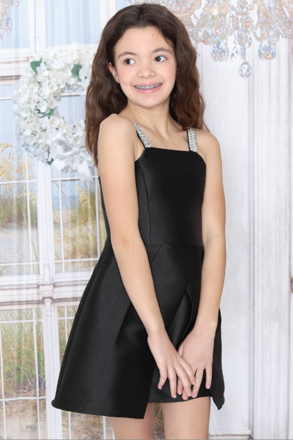 Girls Mikado Rhinestone Strap Aimee Party Dress