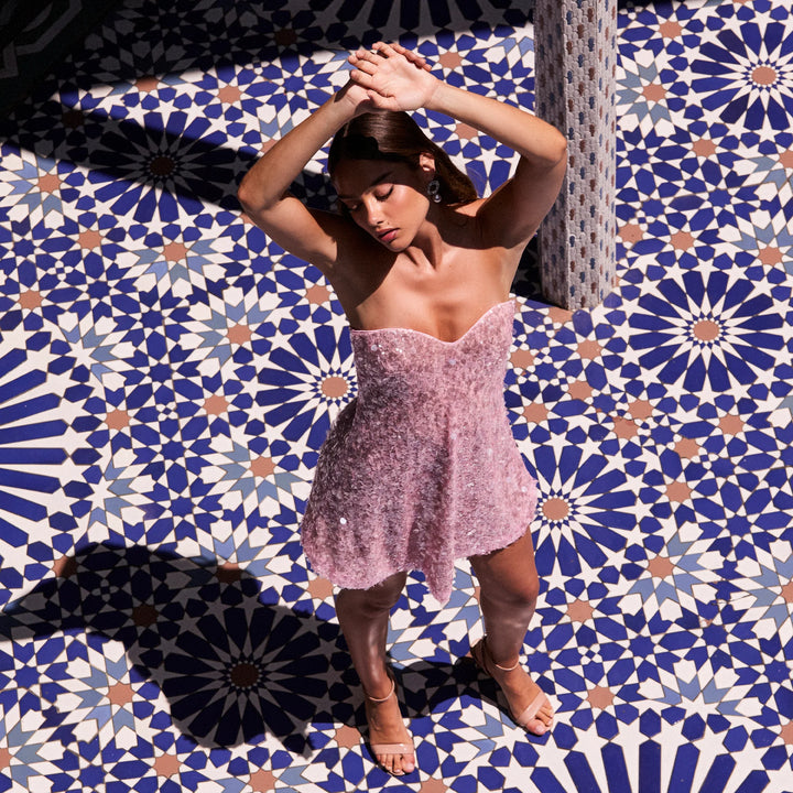 Elevate your evening with this stunning strapless sequin mini dress by Helsi. Crafted with shimmering paillettes that catch the light with every movement. Perfect for those moments when you want to make a memorable entrance.