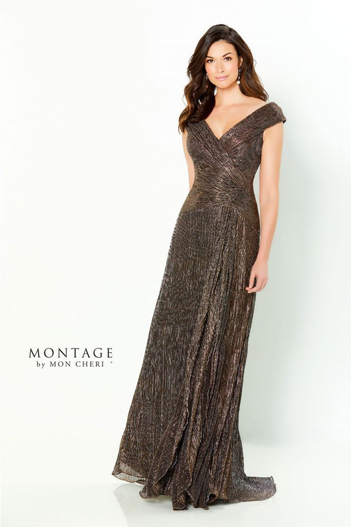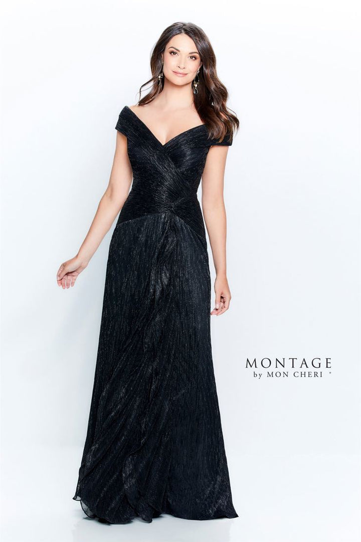 Have your own red carpet moment in this novelty stretch sheath with cap sleeves, a wide V-neckline with a portrait collar, an asymmetrically ruched bodice, a dropped waistline, side cascading ruffles and a sweep train.