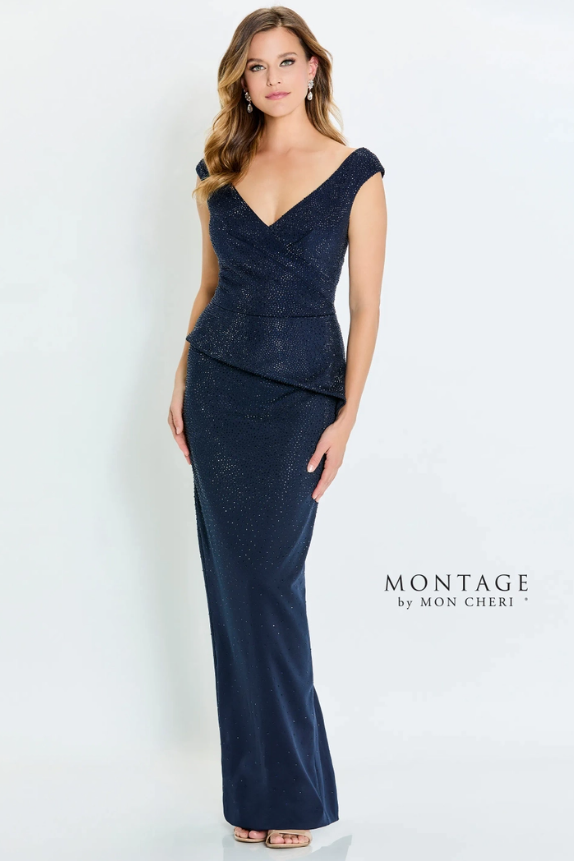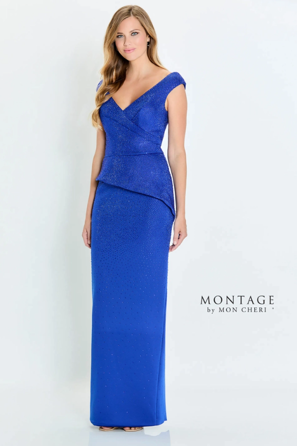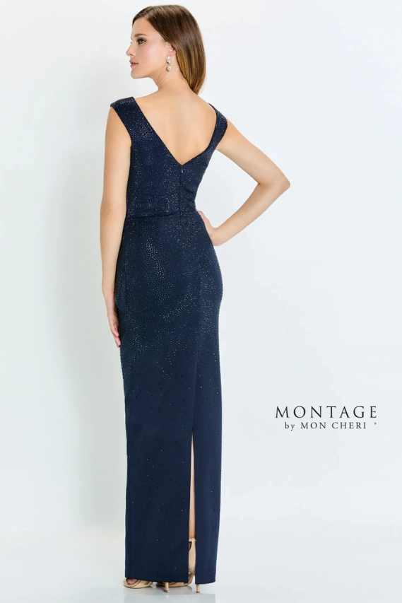 Expect everyone to swoon over the mesmerizing beauty of this stylish Montage by Mon Cheri M536 creation. Fully embellished with heat set stones allover its sleek tailored silhouette, this stunner parades a portrait v-neckline with a surplice style seam accents. Defined with cap sleeves and a deep v-open back, the waist is accented with an asymmetrical peplum design. The sheath skirt columns with a back slit and a full length hem. Be everyone’s delight in this gorgeously ornate Montage by Mon Cheri masterpiece.
