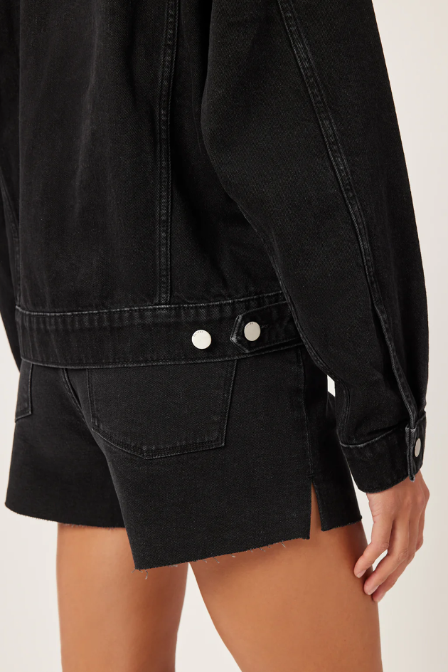 Nightshade is a washed black denim. Eden is a trucker inspired denim jacket with a relaxed fit through the body and sleeves.