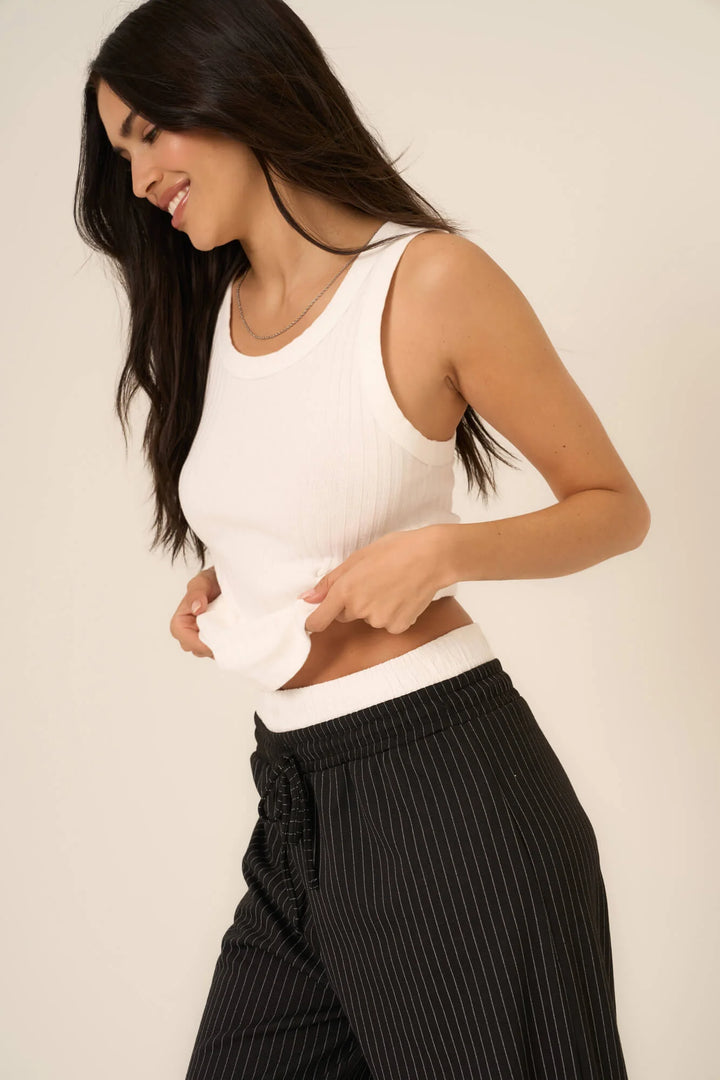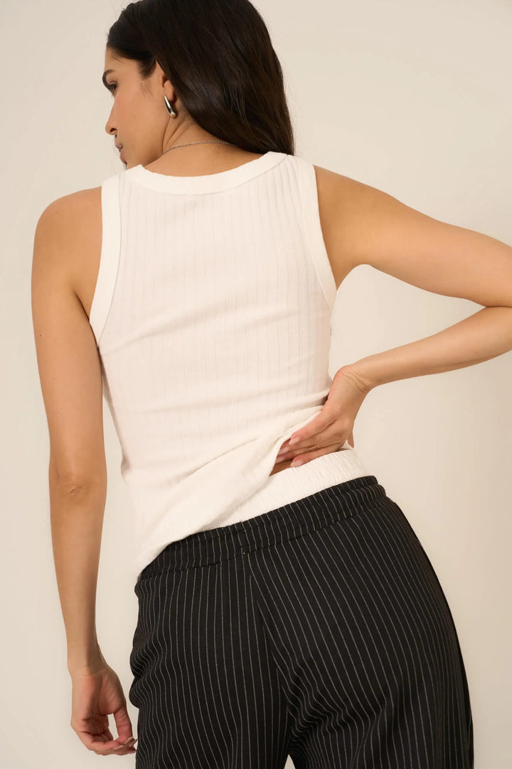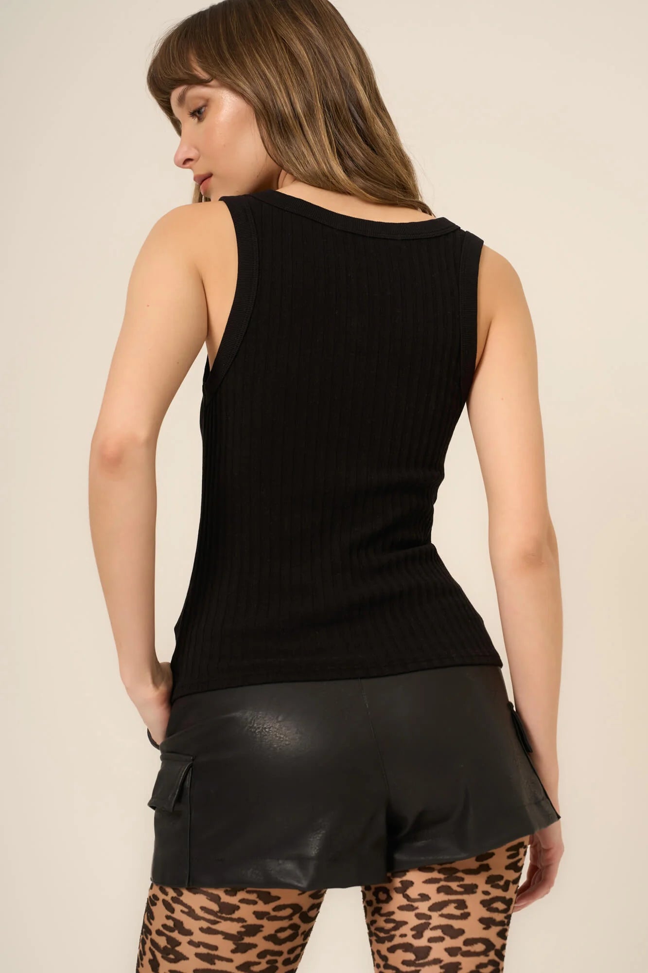 The Cooper Sweater Rib Tank is the perfect blend of the comfort and fabric of your favorite sweater with the flattering fit of your go-to tank top. The wide rib fabric, scoop neck, and fitted silhouette keep this tank looking structured while still feeling comfy. Dress up with leather pants and heels for a night out or keep it casual with jeans for a weekend vibe.