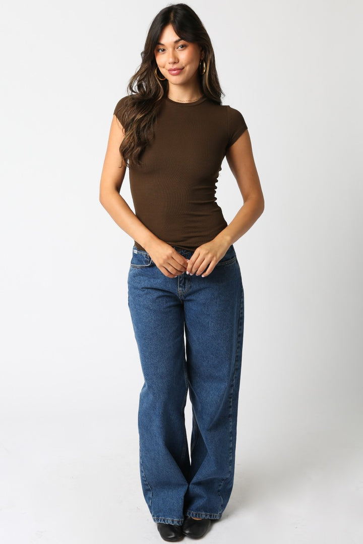 Rib Cap Sleeve Fitted Tee