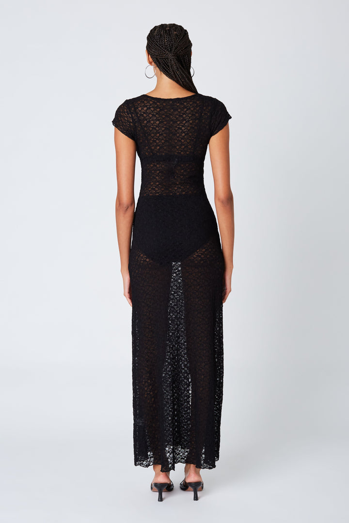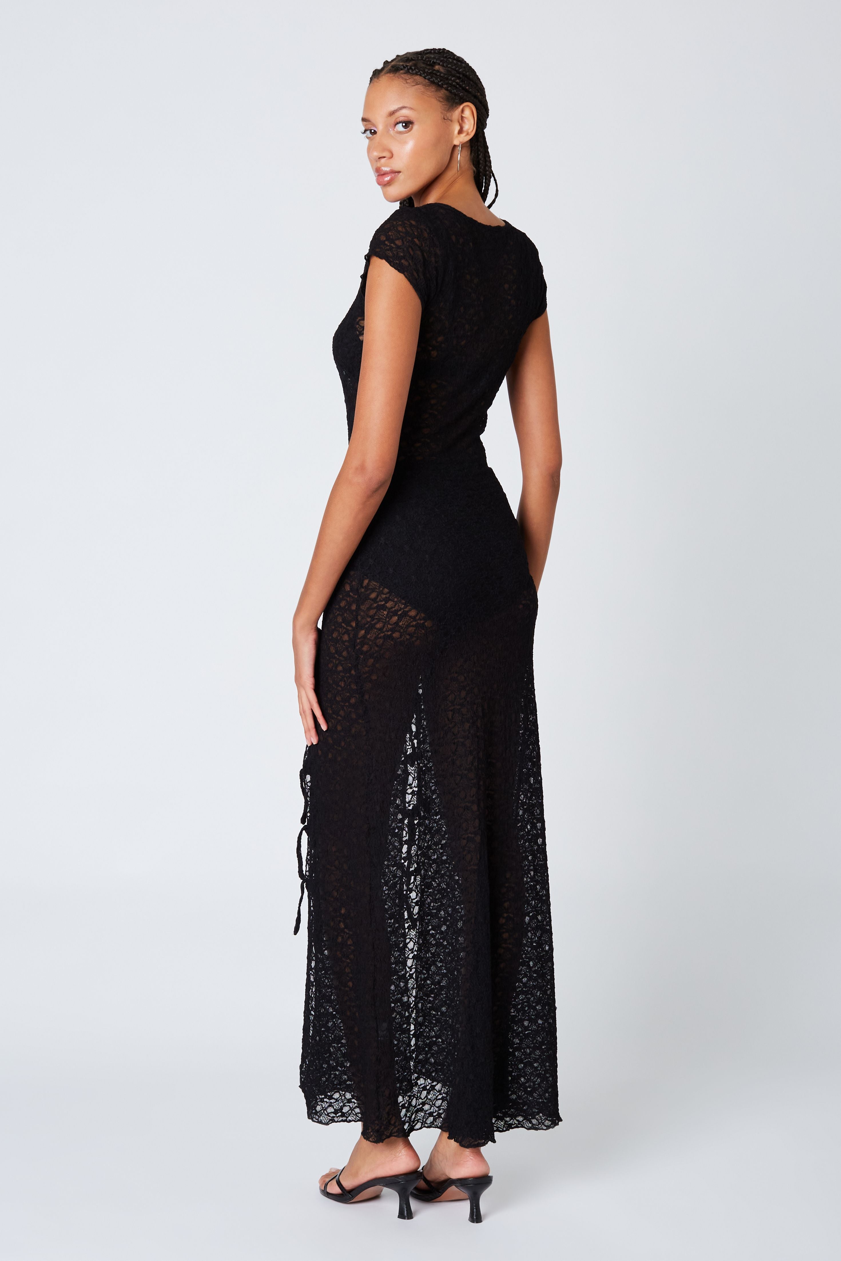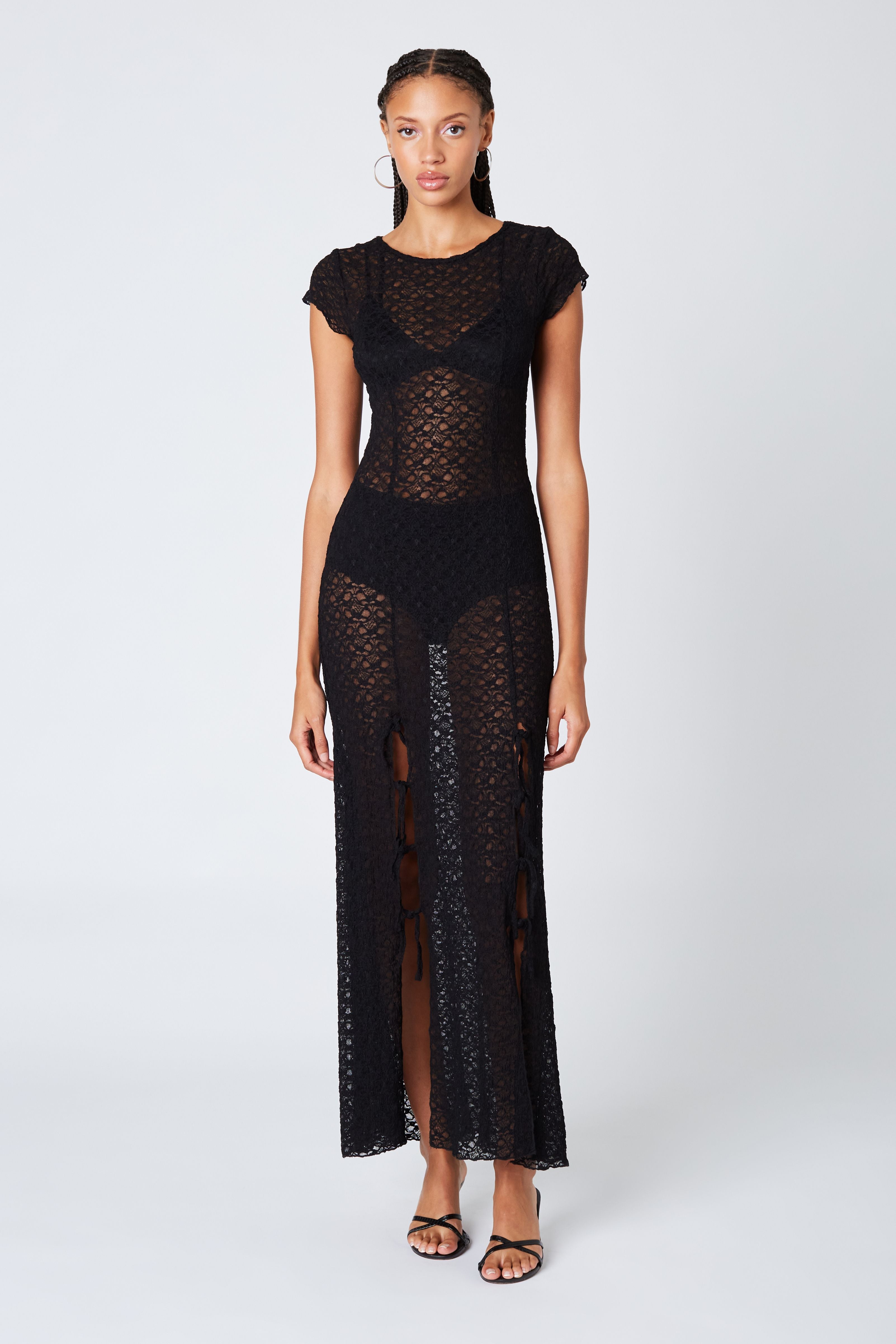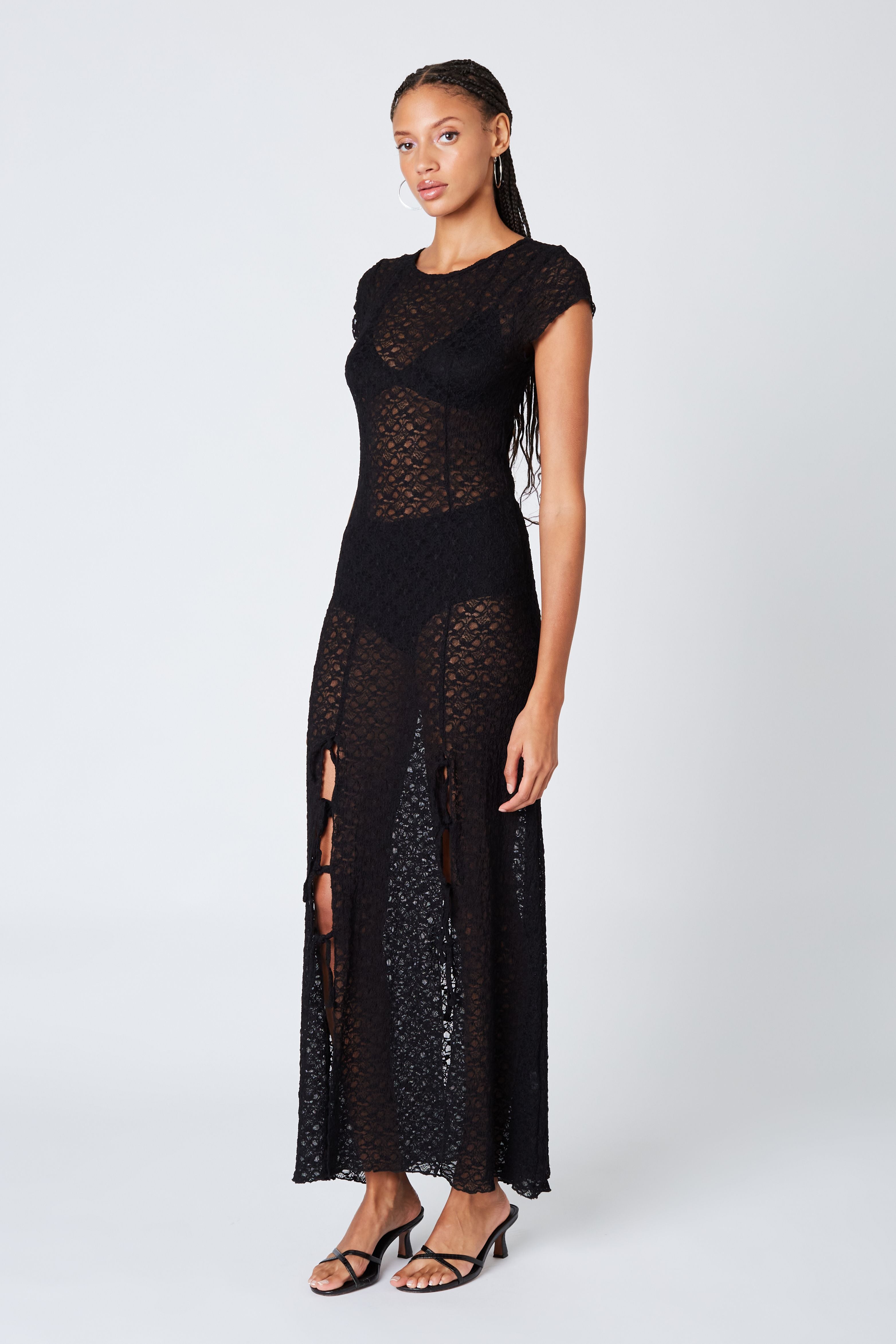 This Sheer Lace Maxi Dress by Cotton Candy LA is a stylish piece perfect for any night out. It features adjustable ties on the slits to give you the perfect fit, and is made of an extremely stretchy and comfortable material. It's the ultimate going-out piece, with a fashionable and eye-catching design.