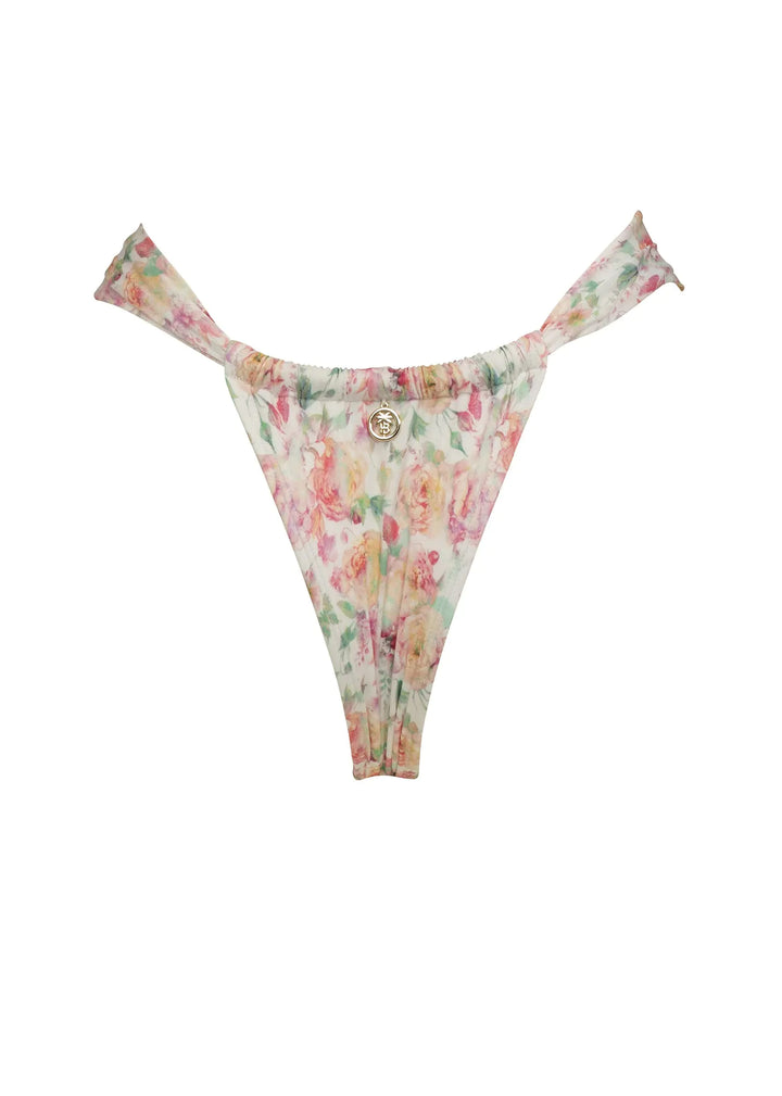 The Shell bikini set gives us the ultimate retro vibes! These Brazilian-style bikini bottoms feature a ruching design and have a particularly flattering fit.