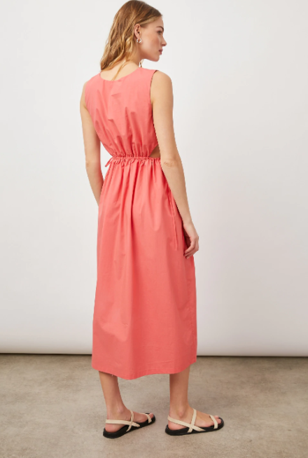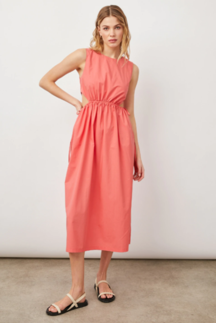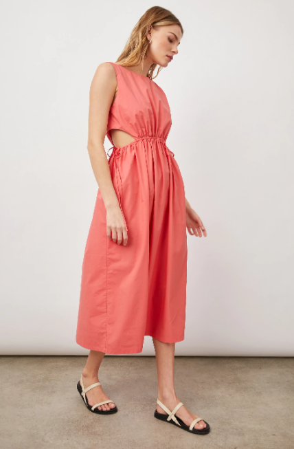 Made from lightweight cotton poplin, this midi length pullover dress features side cut outs with adjustable ties. Wear with sandals for a day time look or a clutch and heels for an evening out.