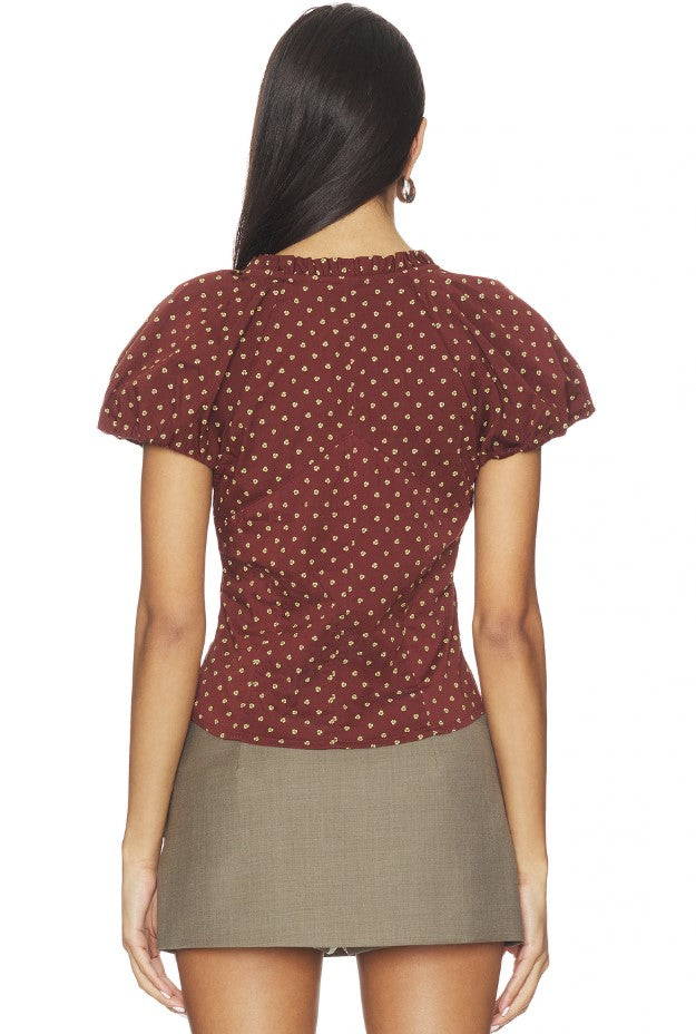 Complete your casual look with the retro charm of this flowery top by Free People, complete with a sweetheart neck and puff sleeves.