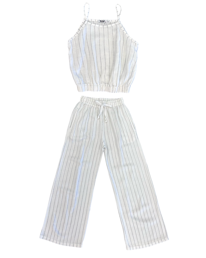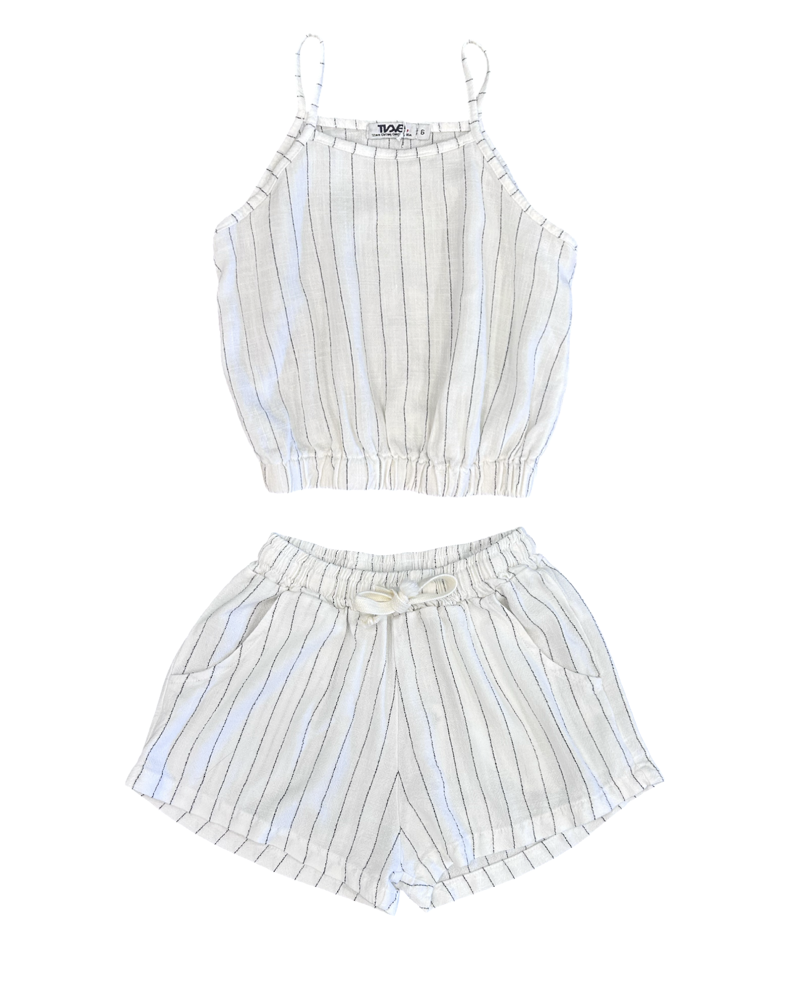 Perfect for warm weather adventures, this girls' cami tank combines comfort with effortless style. The classic white and black striped design pairs with everything in her summer wardrobe, while the elastic waist ensures a flattering, flexible fit all day long. Crafted from lightweight, breathable fabric, it's ideal for sunny days at the beach, park, or poolside. The simple tank silhouette layers beautifully under jackets or stands alone as a go-to casual essential. Give her the comfort and versatility she'll reach for again and again.