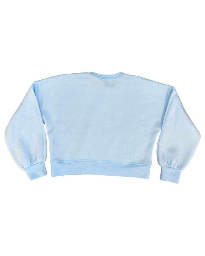 Wrap your girl in comfort and style with this charming powder blue pullover sweatshirt. Featuring a sweet pink "Love" design across the chest, it's the perfect piece for layering on breezy evenings or casual days out. The soft, cozy fabric keeps her warm without the bulk, while the timeless color palette pairs effortlessly with any outfit in her wardrobe. Whether she's heading to school, hanging with friends, or relaxing at home, this versatile sweatshirt delivers both warmth and that effortless cool-girl aesthetic she'll love wearing again and again.