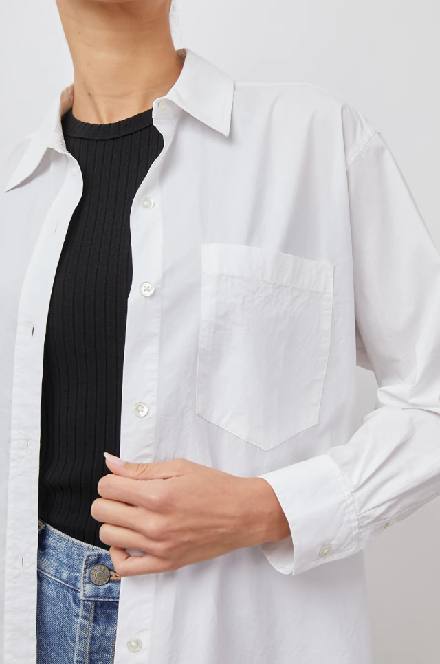 Look polished from work to weekend in this classic button-down shirt. Made from lightweight cotton poplin, this crisp white collared button-down shirt features a classic fit and patch pocket at chest.
