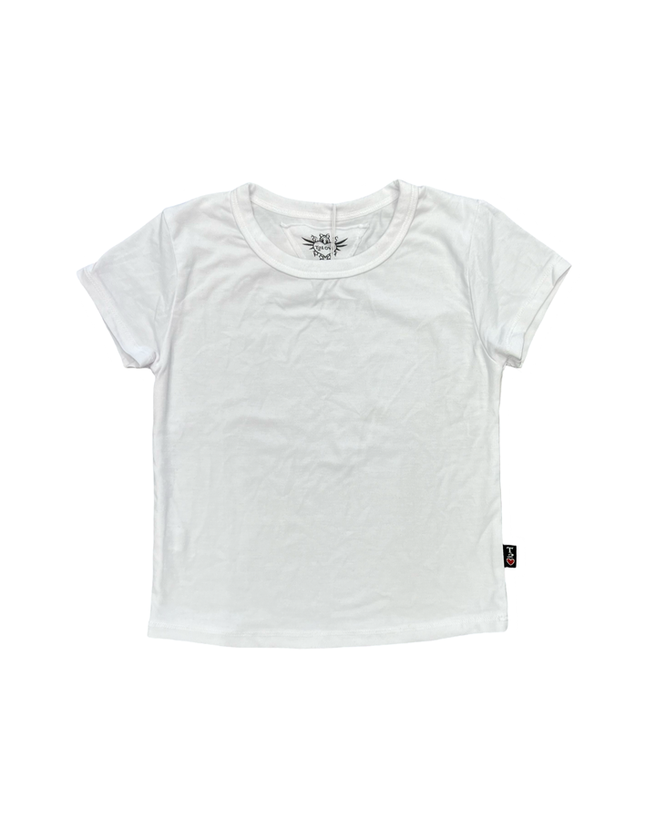 The perfect cotton t-shirt she needs in her closet. Fitted so perfect for layering or on its own.