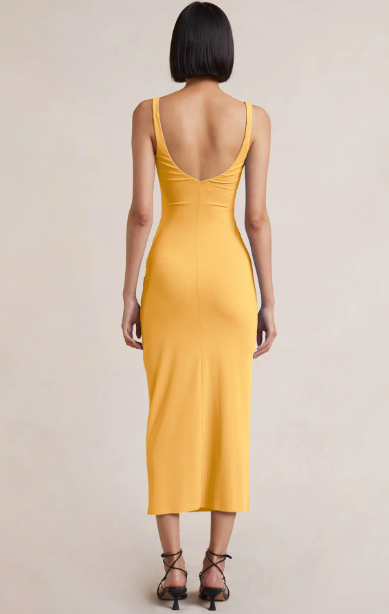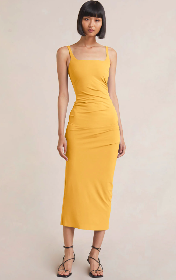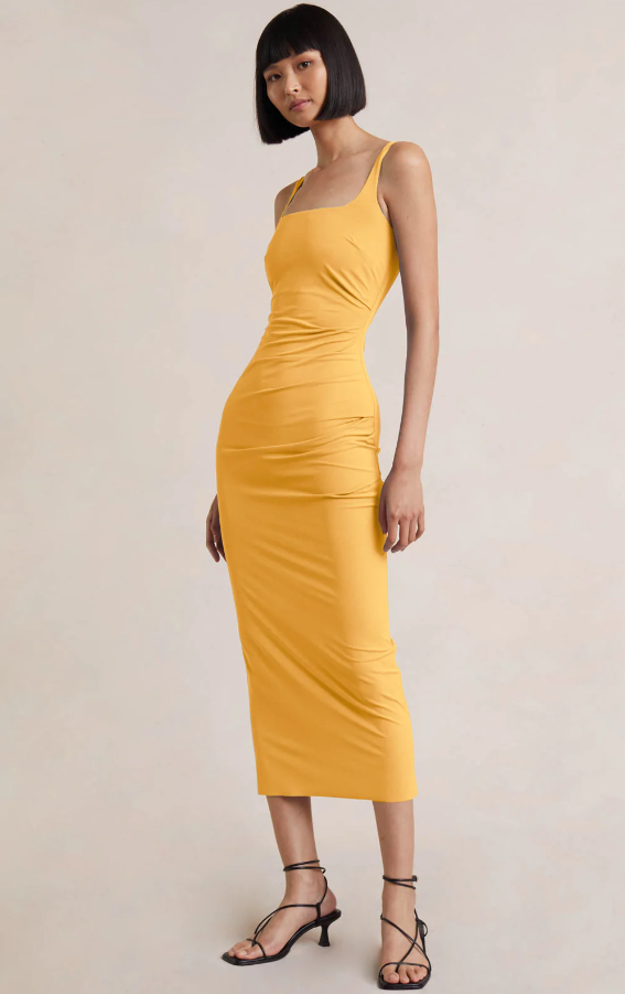 Crafted in a timeless silhouette, the Yasmin Midi Dress is a versatile and chic style. The fitted midi features a flattering square neckline, thin straps and tuck detailing.